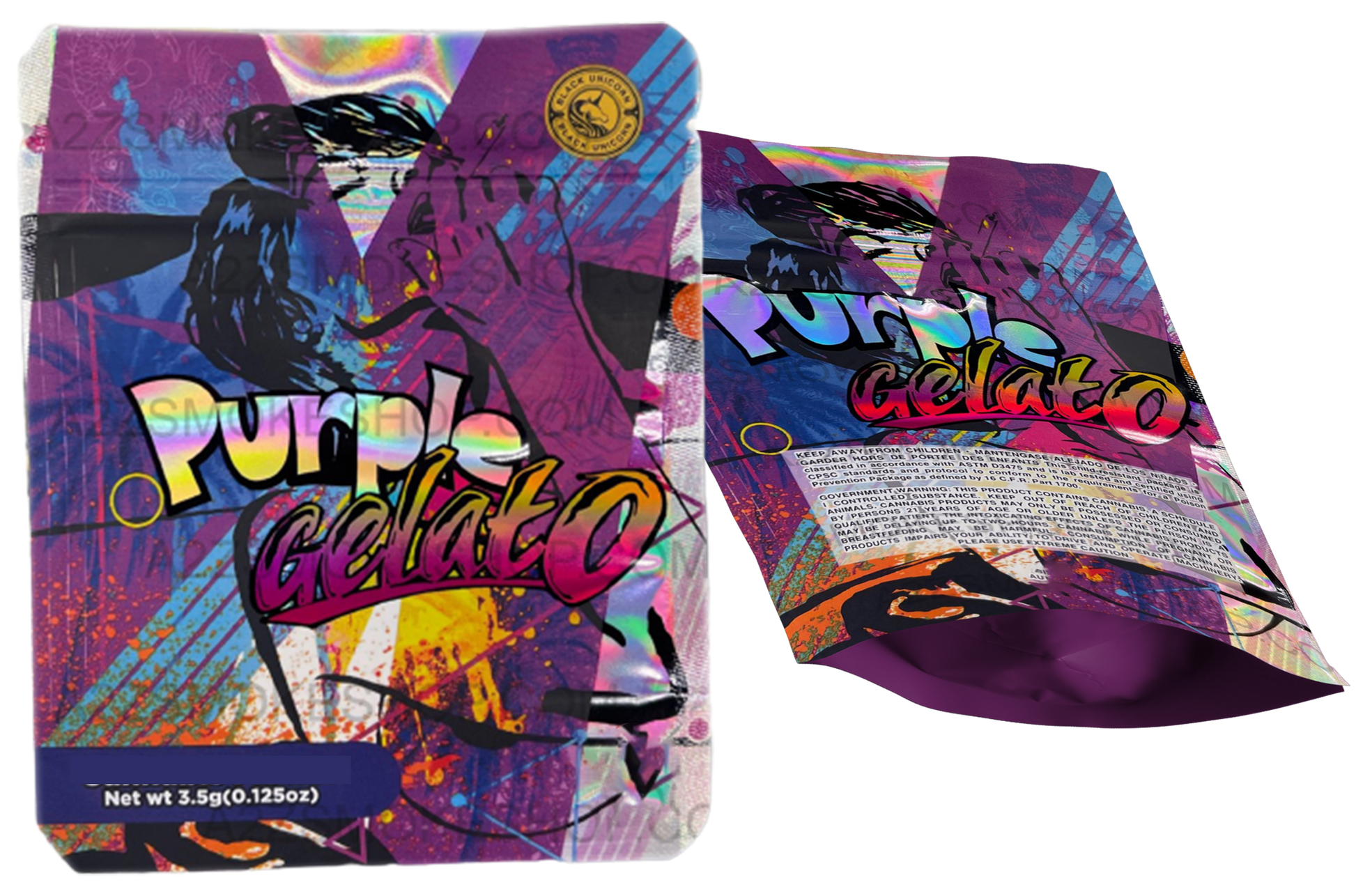 Black Unicorn Purple Gelato Holographic Mylar bag 3.5g