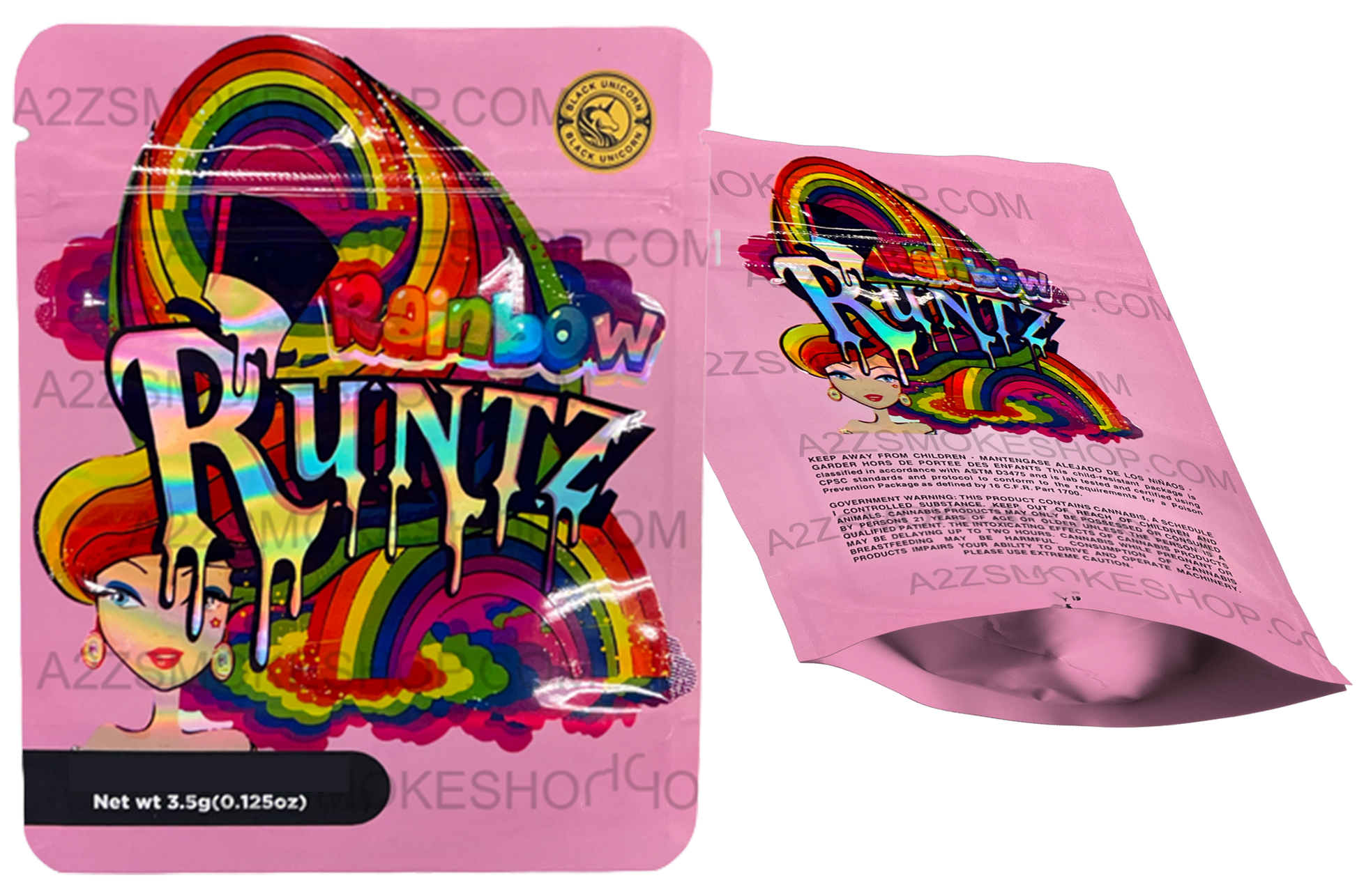 Black Unicorn Rainbow Runtz Holographic Mylar bag 3.5g